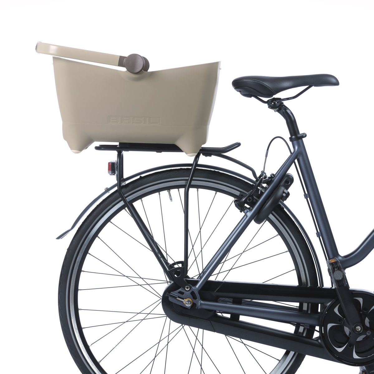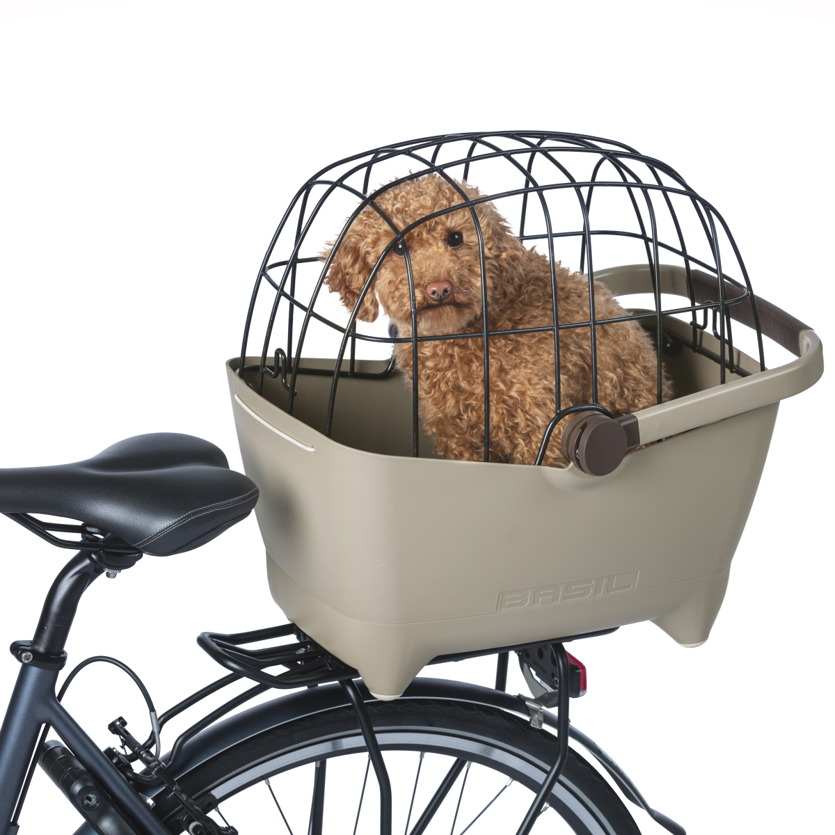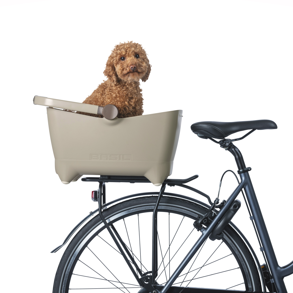 The BUDDY bike basket from BASIL offers furry friends safe and comfortable transport on the bike. The set includes a cushion, a short leash, the reflective elastic straps and the universal MIK set for attaching the basket to all standard luggage racks.