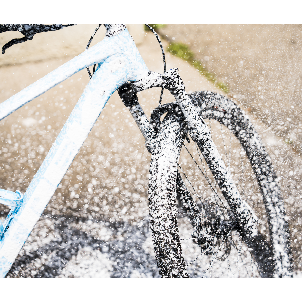 First, wash your bike with the diluted, foamed Power Bike Shampoo and a sponge or microfibre cloth, then rinse it with clear water and finally dry it. If you prefer particularly gentle cleaning or would like to carry out a pre-cleaning first, we recommend applying the cleaning agent using a foam sprayer or foam lance. After a short exposure time, simply rinse off the foam with clear water.