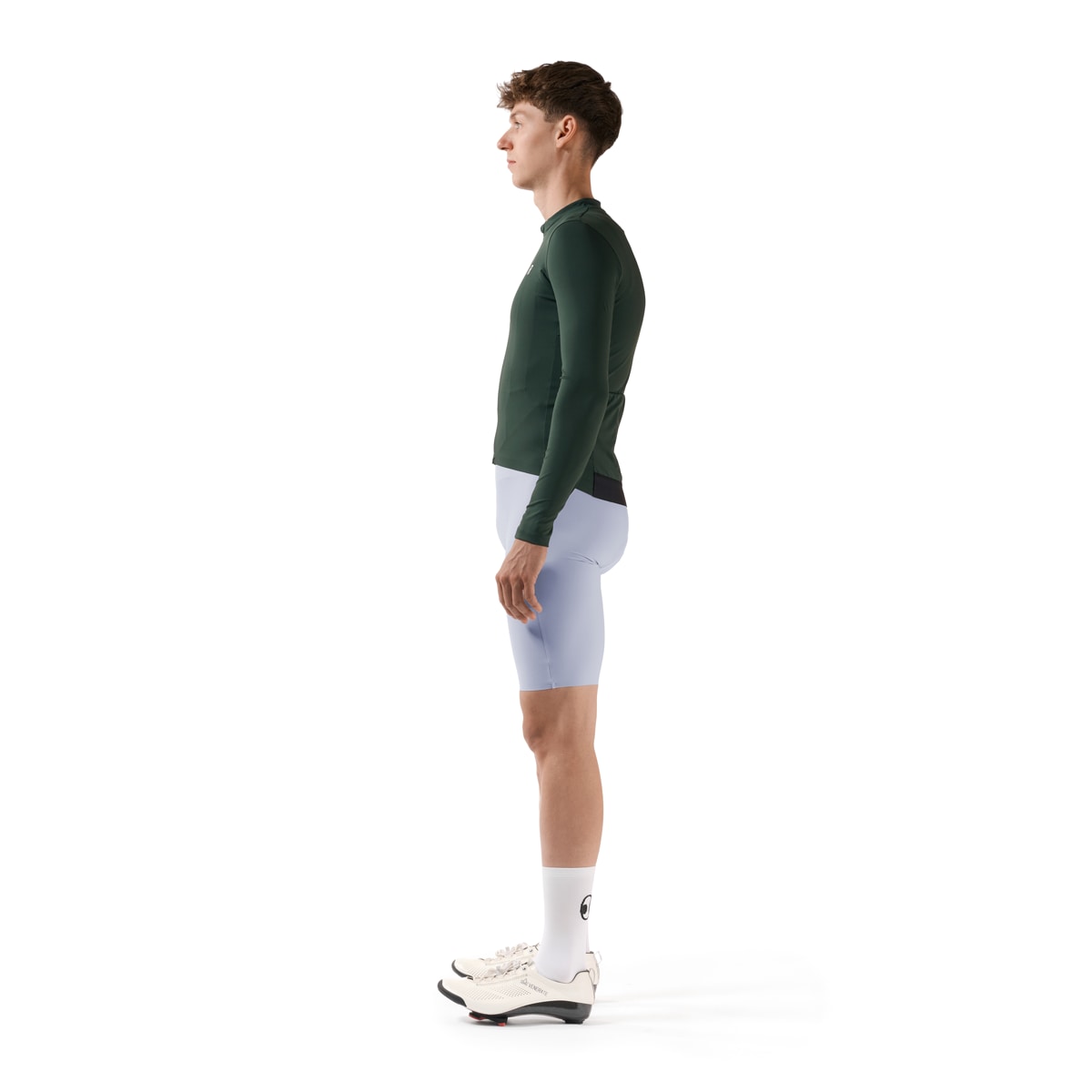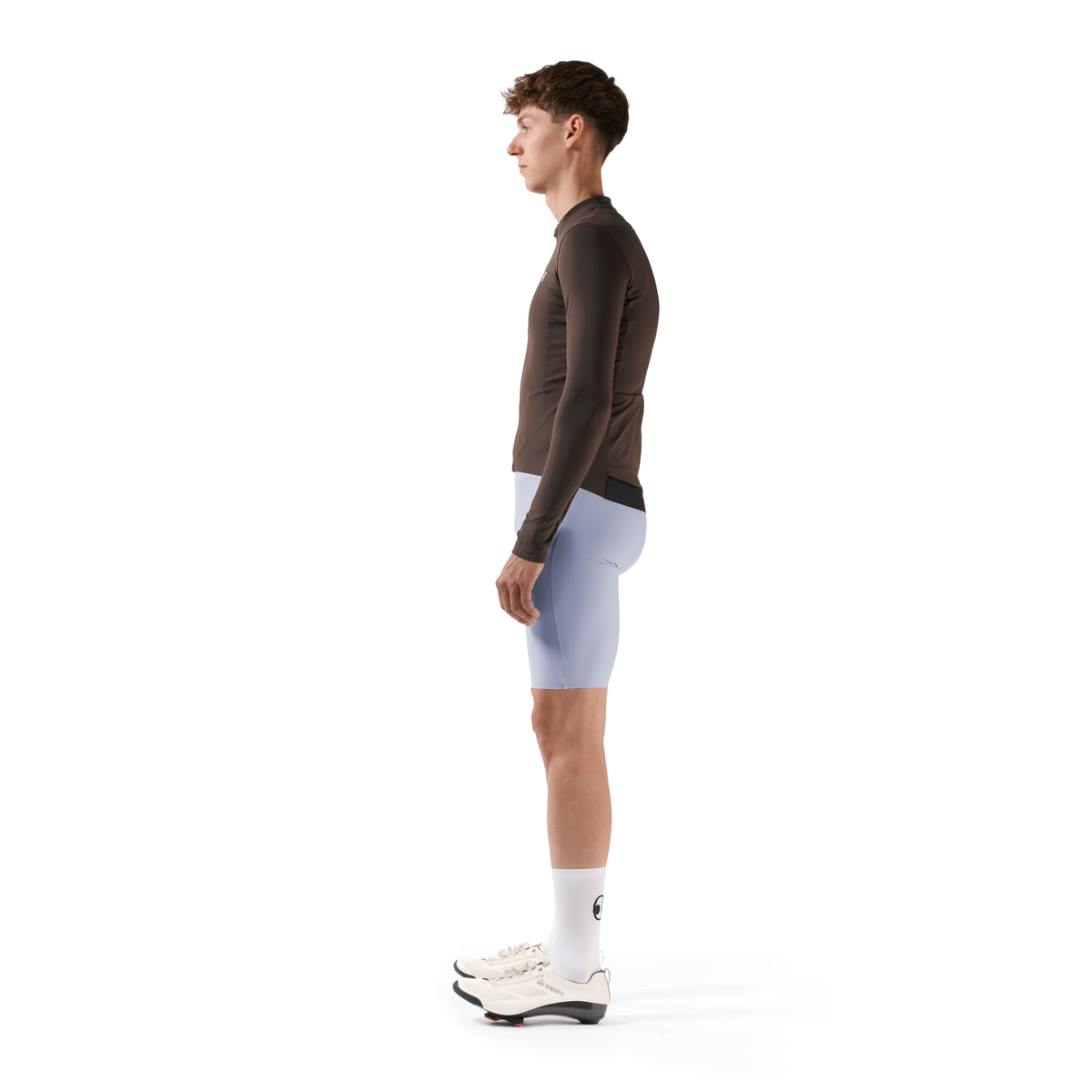 Short at the front, slightly longer at the back and an overall close fit. For a snug fit in an athletic position on the bike.