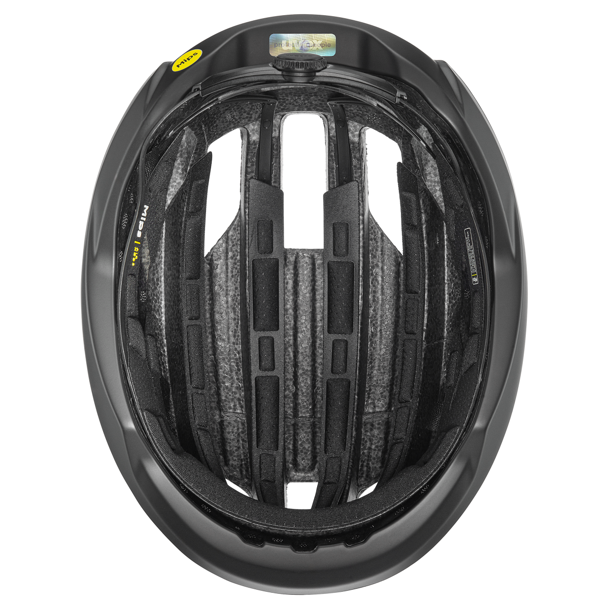 Outstanding protection. Outstanding breathability. Outstanding design. The ULTIMATE SURGE CARON MIPS road helmet from uvex impresses with its strong features and scores points for lightness and comfort. This is ensured by CARBON MULTI INMOULD technology, a solid combination of shock-absorbing EPS hard foam and seamlessly overlapping polycarbonate shells and integrated carbon power – for stability and impressive lightness. The tried-and-tested MIPS AIR NODE impact protection system is responsible for your protection, while the clever CCUBED cooling technology ensures a cooling effect inside the road helmet. In addition, the 3D-IAS-PRO system ensures precise adjustment to head size and shape, both in terms of height and width. The straps with flat Y-distributor fit neatly, do not interfere with the airstream and remain securely in place. For performance when every watt counts!