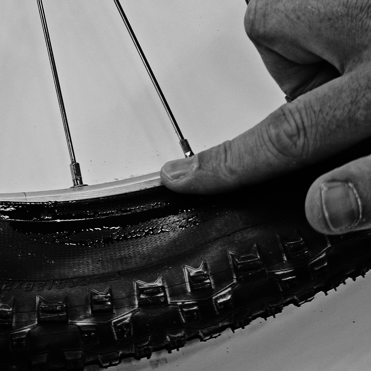 To make sure the tyre slips on the rim quickly, apply a thin layer of gel on rim flange and tyre bead and use a tyre lever for installation, as usual. The gel can be applied with the finger without hesitation, as the formula is very skin-friendly.