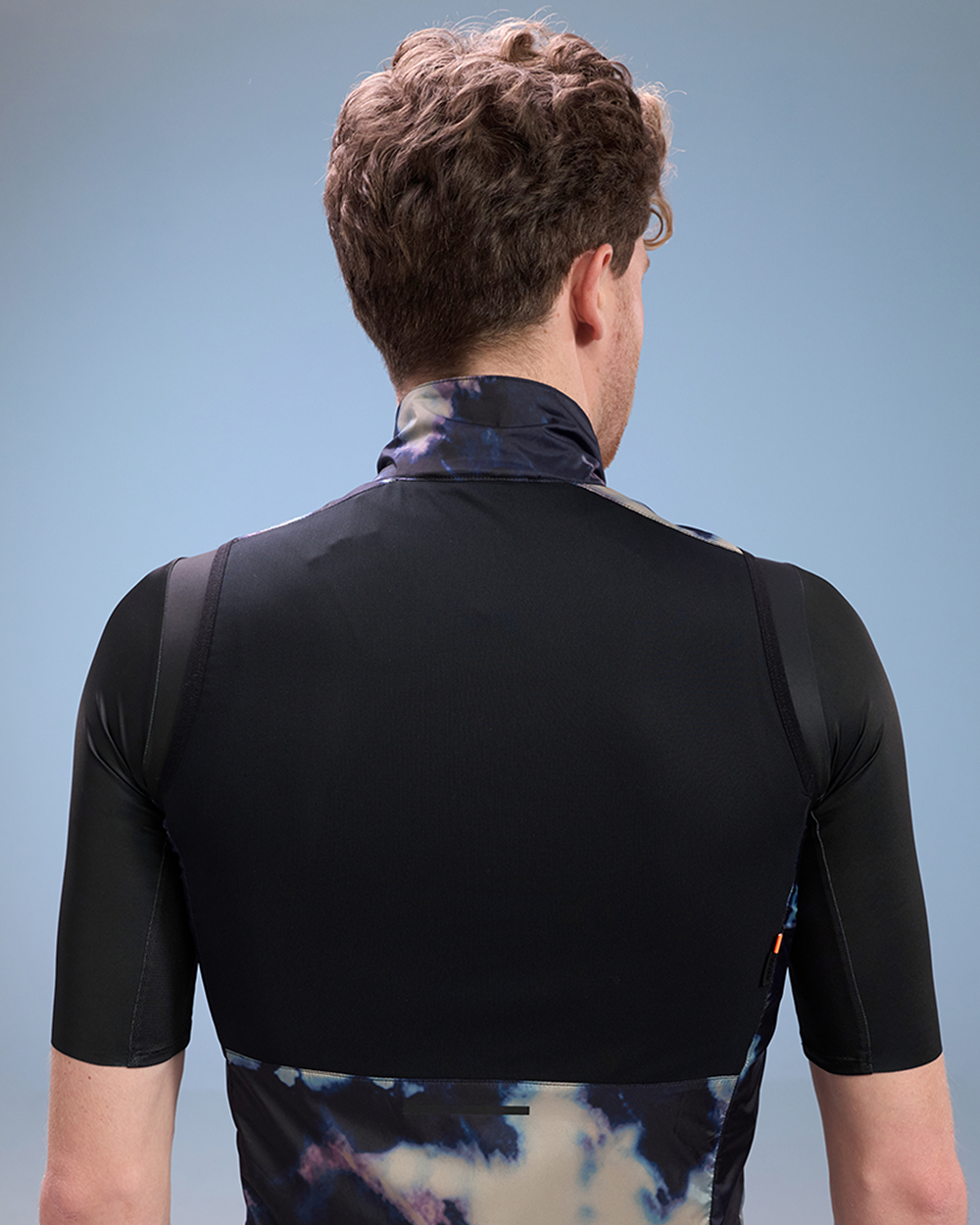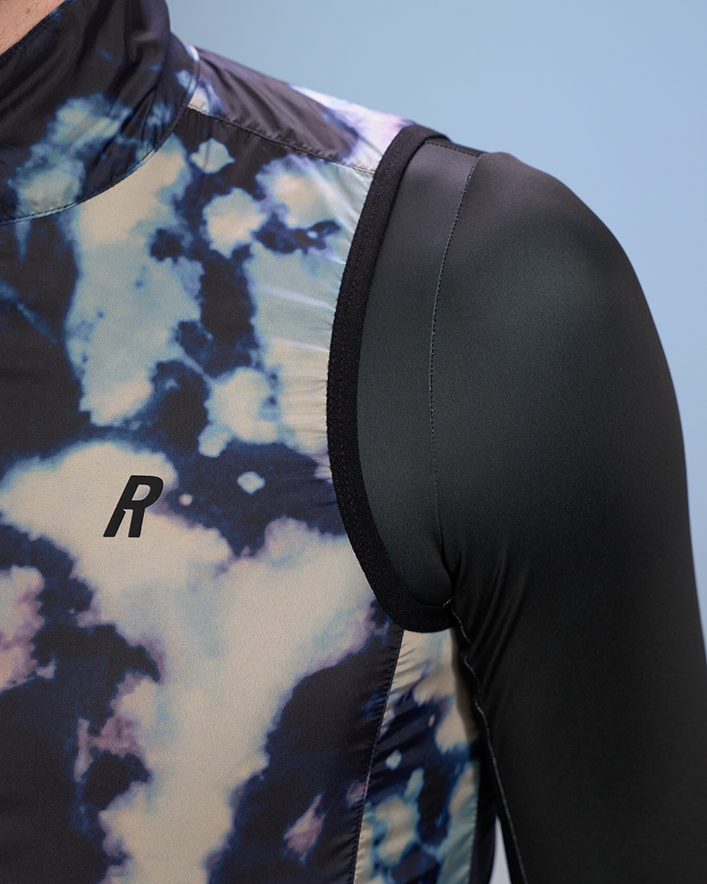 The ROSE Race Printed Wind Vest with its eye-catching all-over print is a super-light, packable essential for your tour. The high collar, windproof material and close-fitting cut keep the wind out.