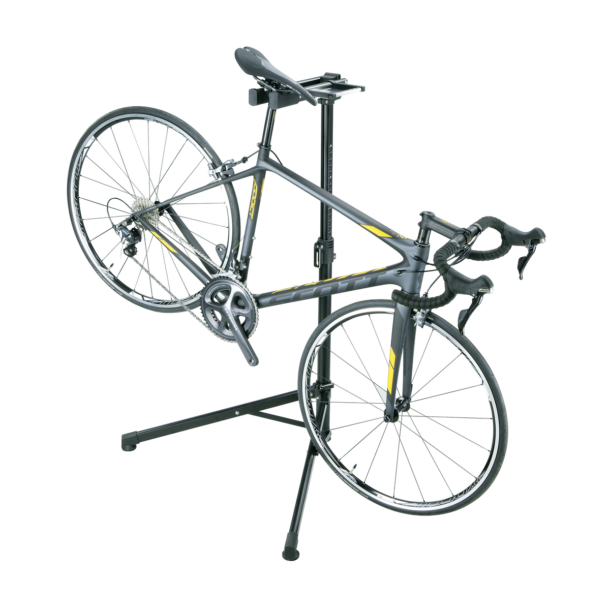 The PrepStand ZX workstand by Topeak protects your bike from damages or scratches on seat tube and seatpost, thanks to a material-friendly mechanism. Just lift your bike, hang seatpost or seat tube on the arm of bike holder, and lift up rear wheel for bike maintenance and adjustments. Rubber base feet increase stability.