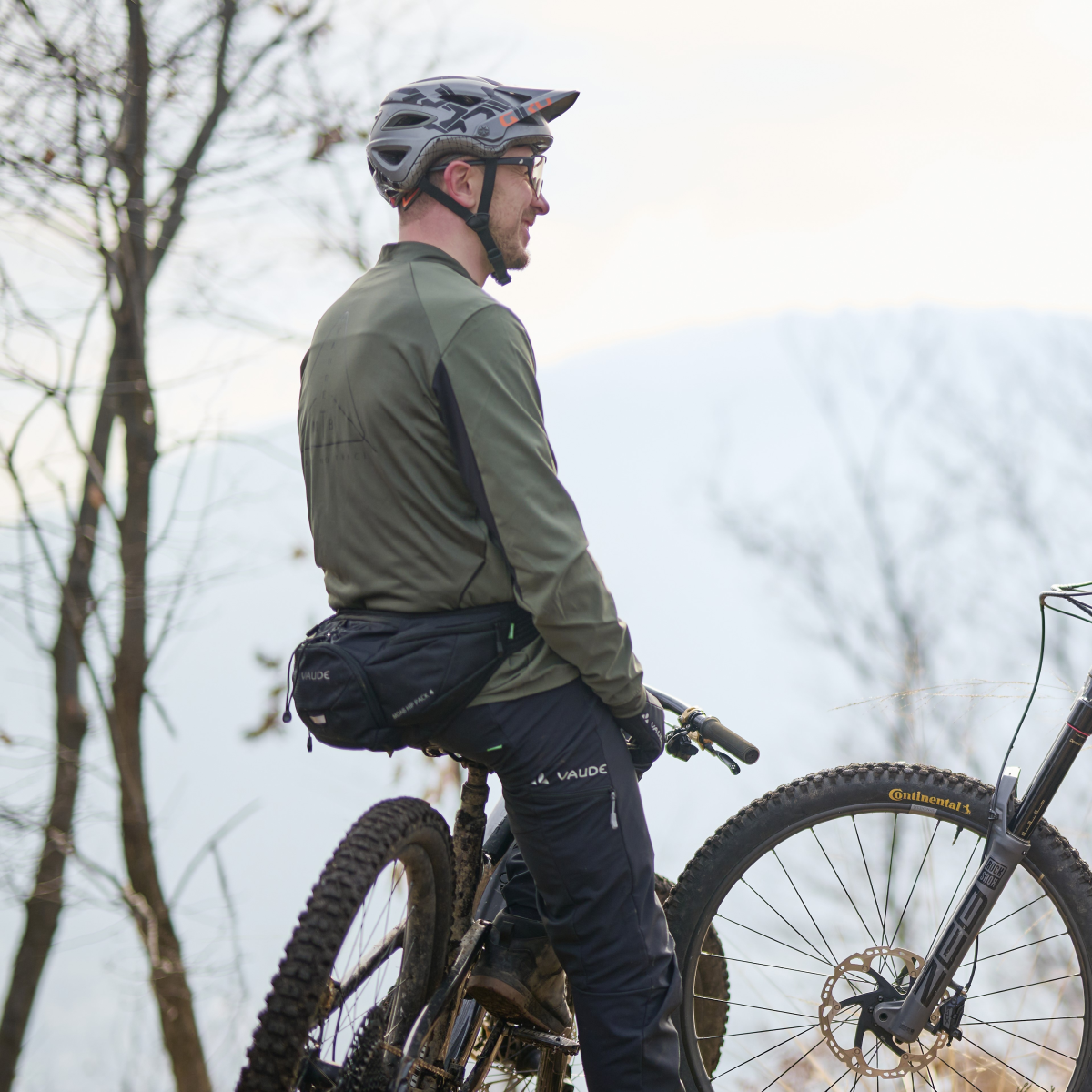 The MOAB HIP PACK 4 by VAUDE has a volume of 4 litres to offer enough storage space for long bike tours. Your back remains free, the load is better distributed and you have absolute freedom of movement. The substitute for jersey pockets offers space for a drinks bottle, nutrition, tools and your mobile phone.